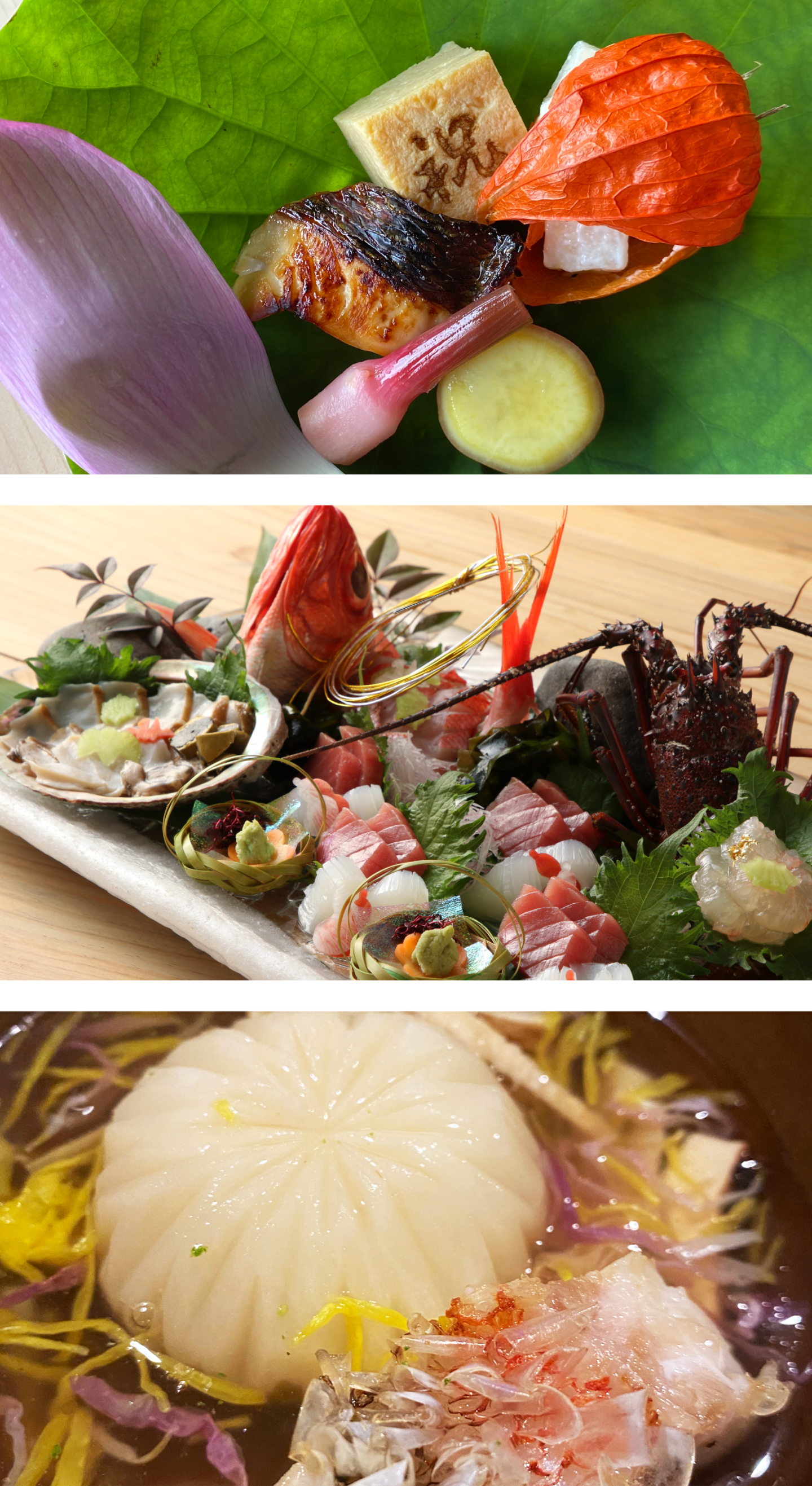 JR参宮線「伊勢市駅」より徒歩約5分の場所にあります。豊かな自然が育んだ海の幸や山の幸をはじめとする、様々な食材を使用して、丁寧に手間を惜しまずお作りするお料理の数々。