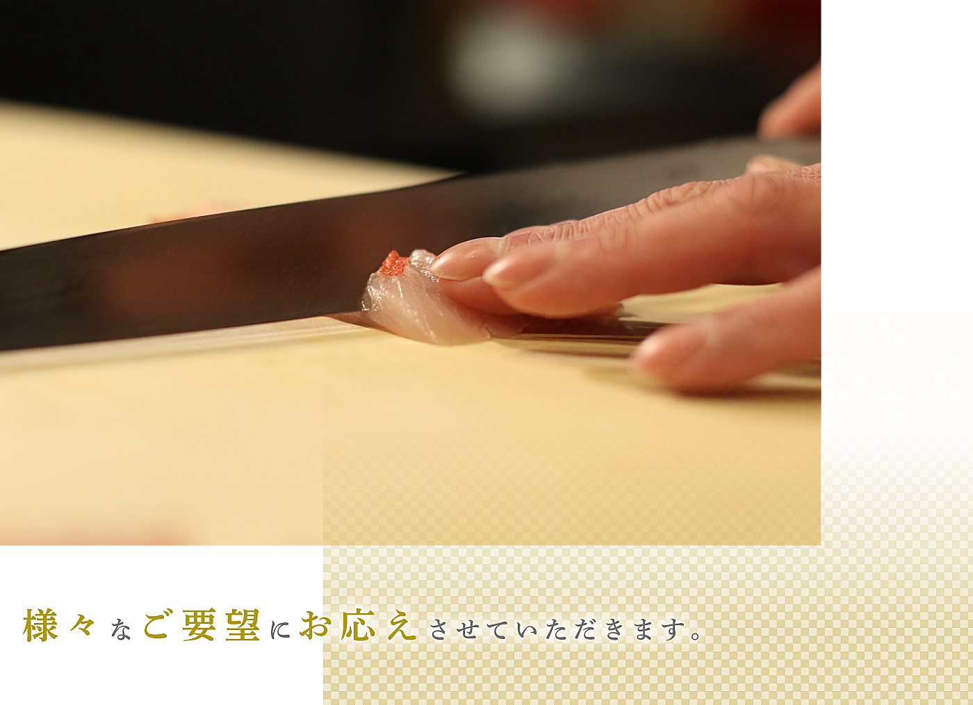 お好みの食材やお品数、調理法などのご要望にもお応えさせていただきます。些細なことでも結構ですので、ご要望をお聞かせください。