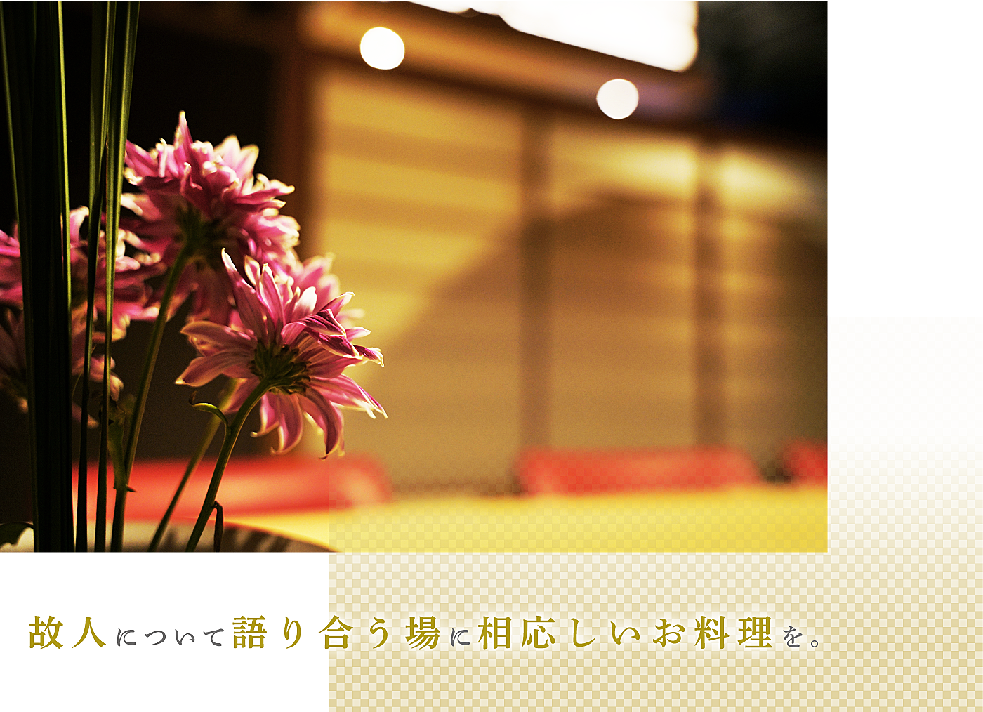 故人について語り合う場に相応しいお料理をご用意させていただきます。